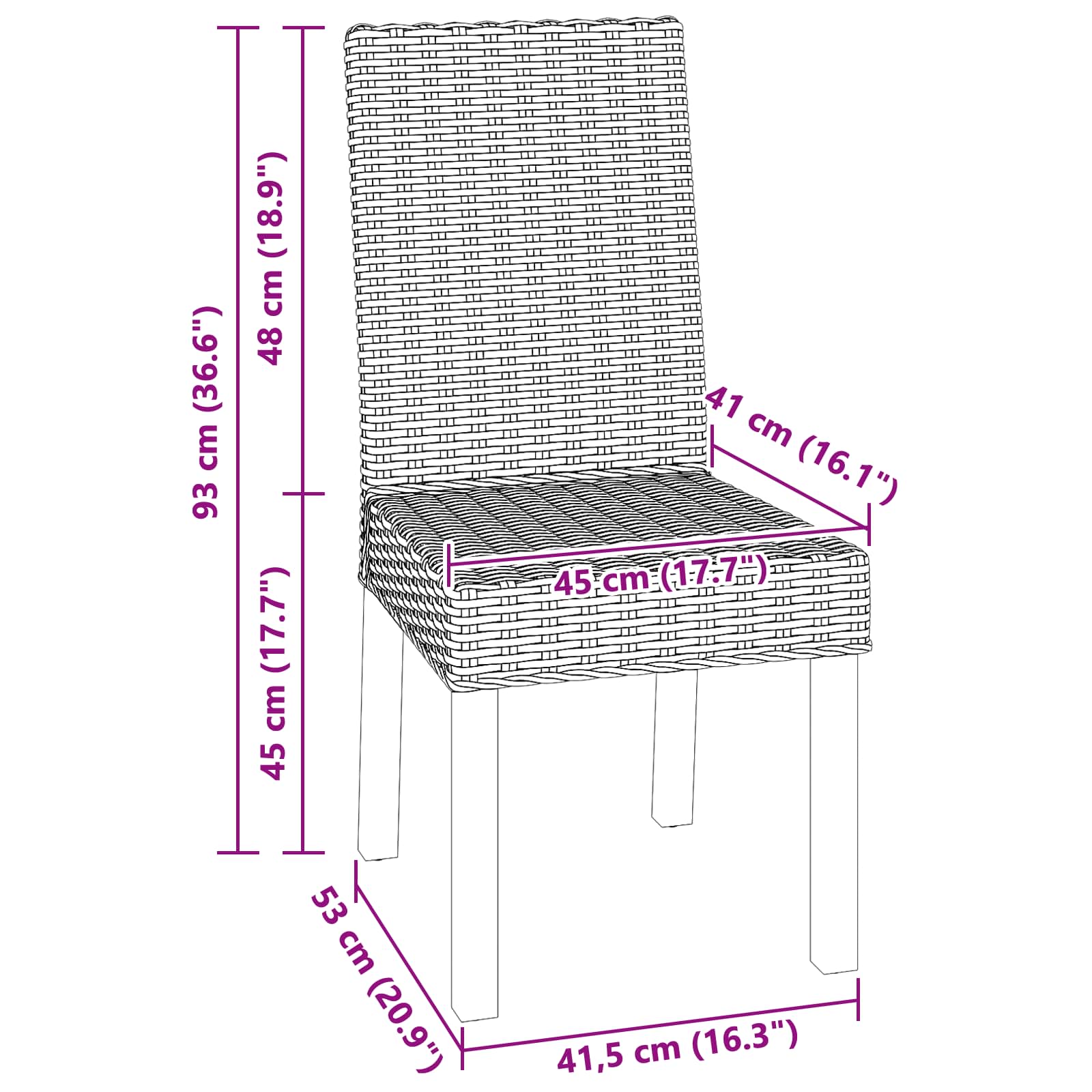 Dette settet med spisestoler blander moderne stil med praktiske løsninger, og hever ethvert stue- eller kjøkkenområde. Med rene linjer og minimalistisk tilnærming gir disse stolene en både sjarmerende og sofistikert tilstedeværelse. Det flotte vevde rottingmaterialet tilfører et naturlig preg, mens mahogni-rammen sikrer styrke. Perfekt for koselige middager eller livlige samlinger, oppmuntrer stoldesignet til avslapning og sosialt samvær.