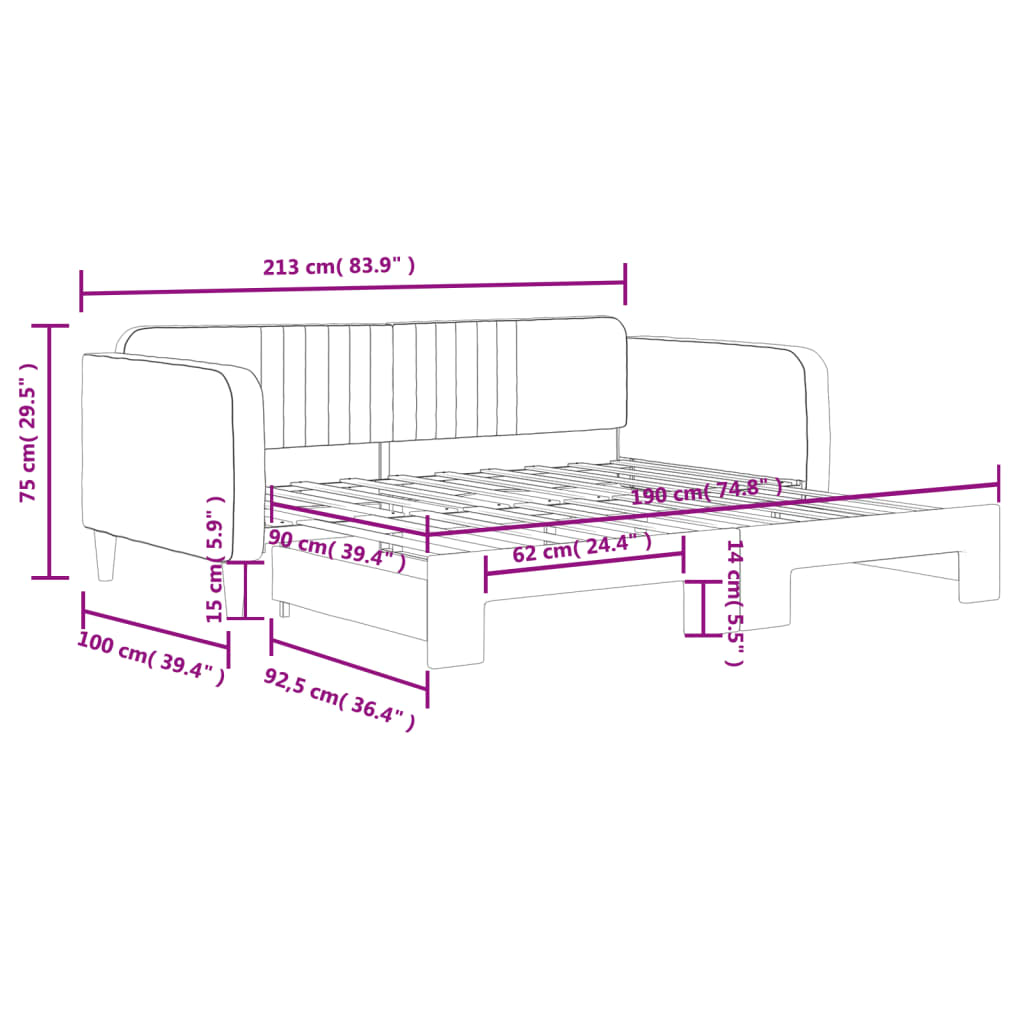 Uttrekkbar dagseng lysegrå 90×190 cm fløyel